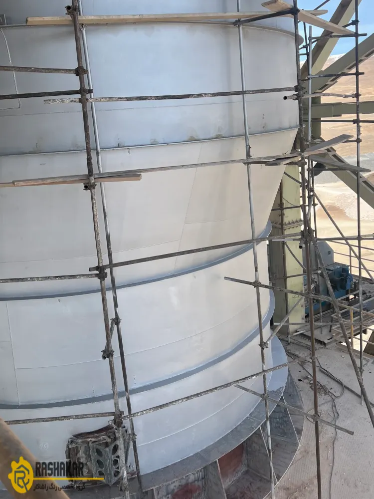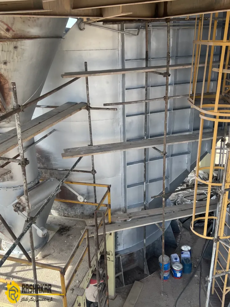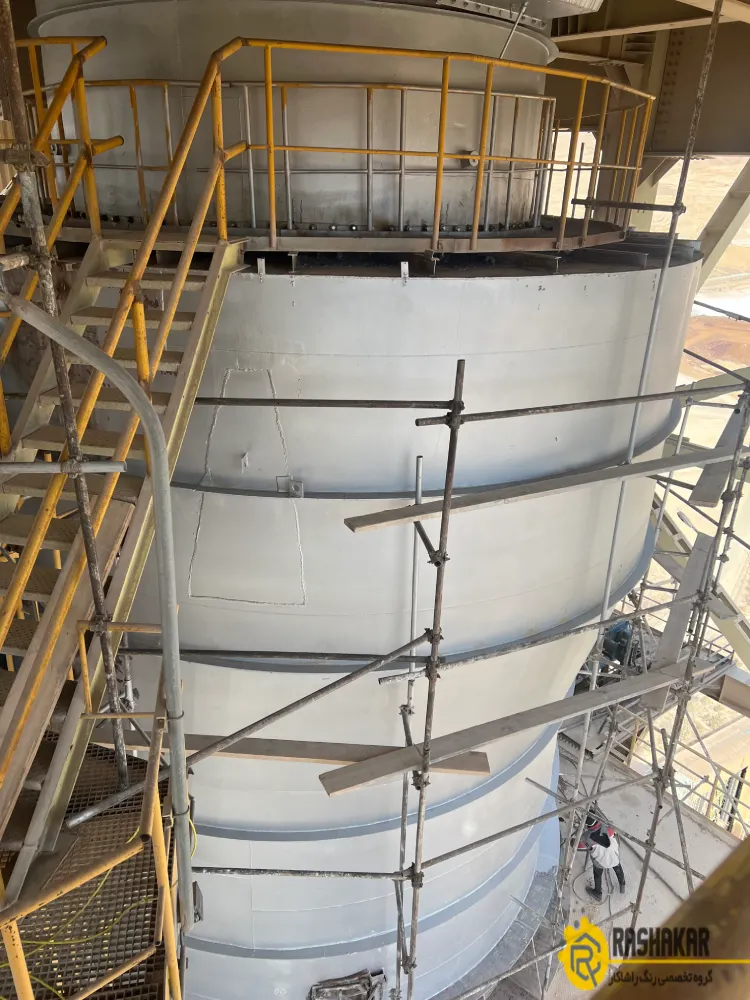تامین و نصب داربست و کاور و مسائل ایمنی و اجرای بلاستینگ لیزری و رنگ آمیزی رنگ سیلکونی نسوز به ضخامت ۳۰-۴۰ میکرون برای سیکلون های دپارتمان پیش گرمکن سیمان فراز فیروزکوه به مساحت تقریبی۴۰۰۰ متر مربع